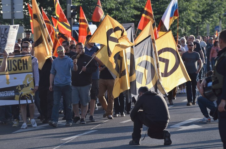The identitarians spend a lot of time organizing in the public space. They hold conferences and protests; they climb rooftops and put veils on statues. In 2016, German identitarians hung banners from the Brandenburg Gate in Berlin asking for “secure borders,” seemingly unaware that a secure border had stood behind that exact spot until 1989.