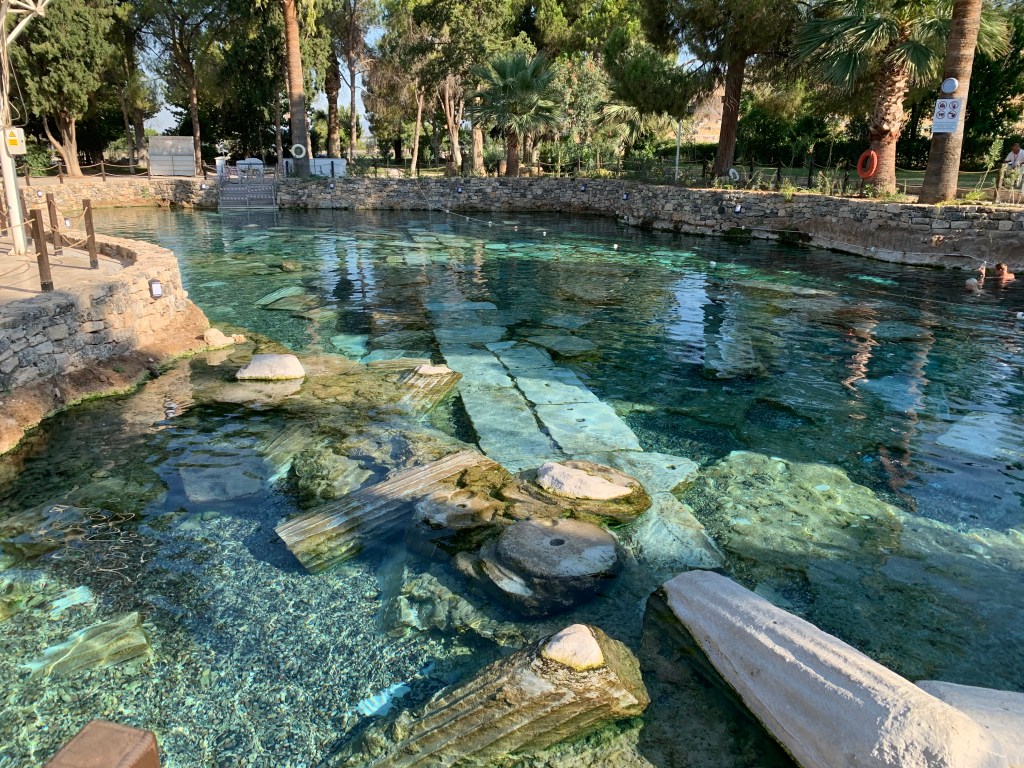 200 Joer viru Christus gouf déi aalgrieschech Stad Hierapolis bei dësen Thermalquelle gebaut, a war schon deemols immens populär Destinatioun als Spa. Et gouf verzielt dass dat natierlecht Waasser eng heelend Wierkung op der Kierper huet. Dës uraal Schwämm gëtt och haut nach: Op engem Panneau nieft dem Waasser kritt ee versprach dass dës Quellen bei Häerz- a Kreeslafproblemer, Hautkrankheeten, Rheuma, oder Mokrankheeten hëllefe sollen.