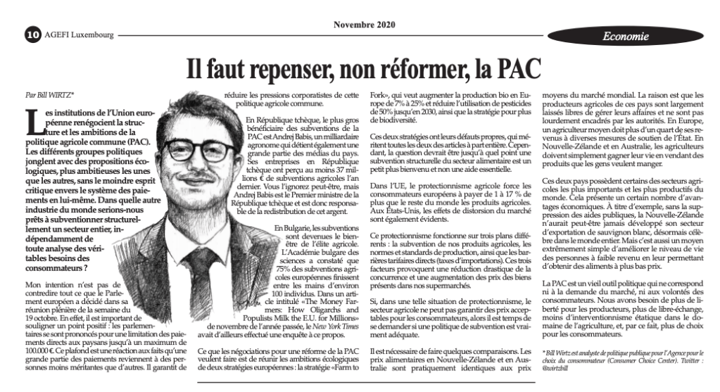 Les institutions de l’Union européenne renégocient la structure et les ambitions de la politique agricole commune (PAC). Les différents groupes politiques jonglent avec des propositions écologiques, plus ambitieuses les unes que les autres, sans le moindre esprit critique envers le système des paiements en lui-même. Dans quel autre industrie du monde serions-nous prêts à subventionner structurellement un secteur entier, indépendamment de toute analyse des véritables besoins des consommateurs?